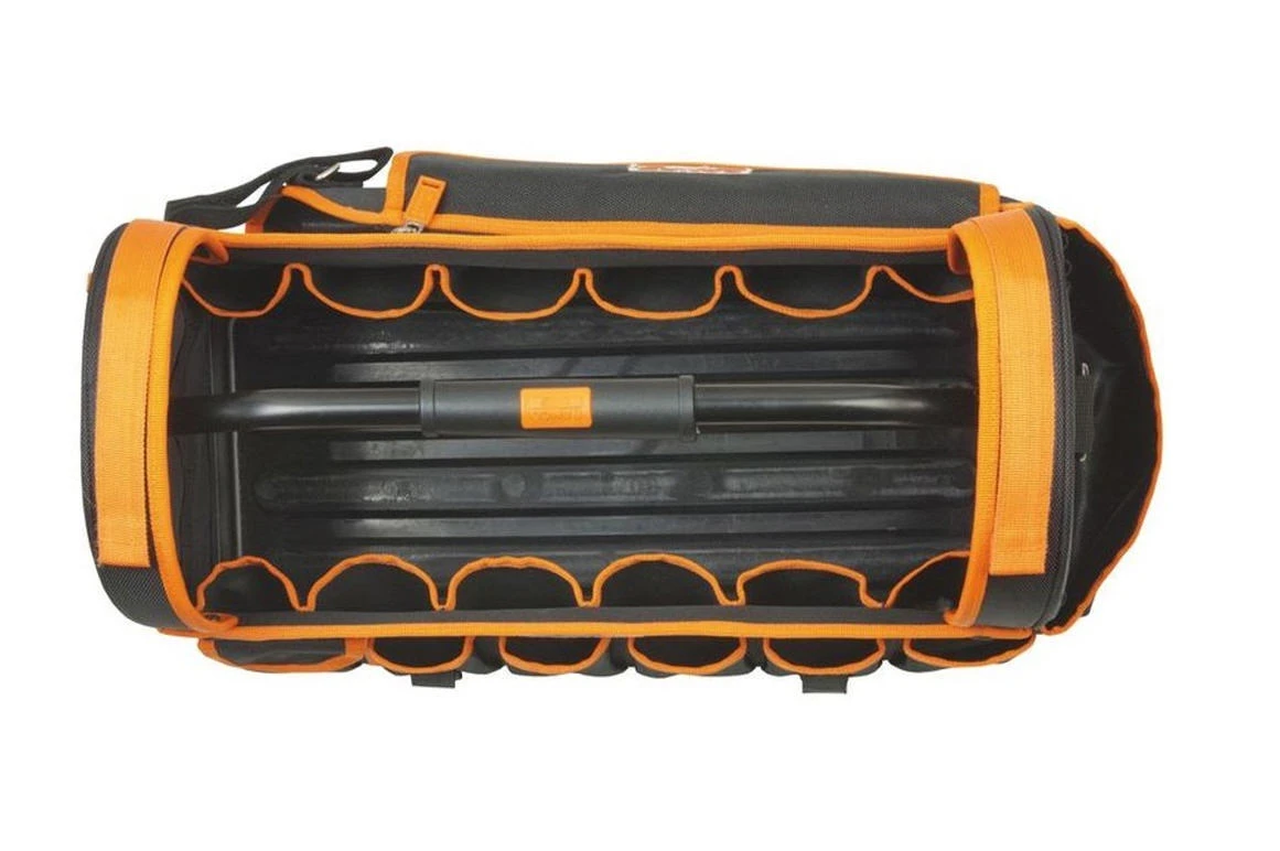 - Pockets, mini- pockets, elastics & dividers outside and inside the bag that fit the different tools