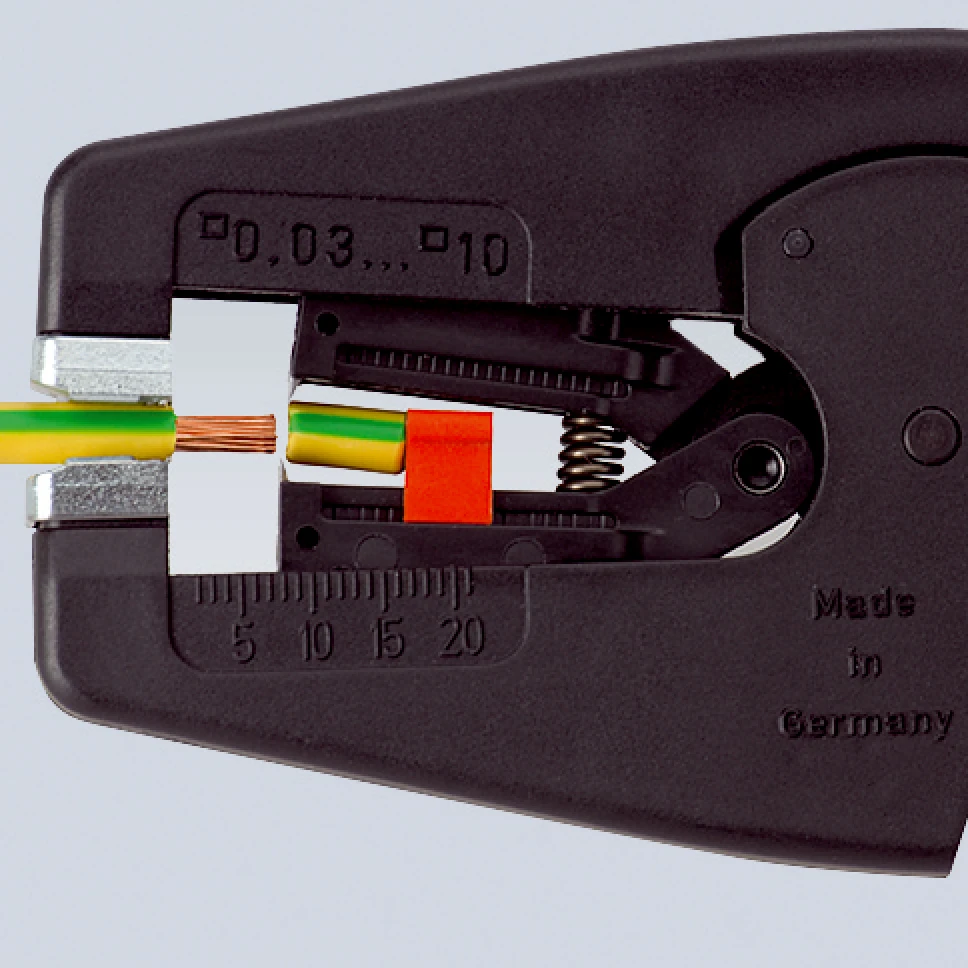 - Fully automatic adjustment to all single-, multi- and fine-stranded conductors with standard insulation throughout the entire capacity range from 0.03 to 10.0 mm²