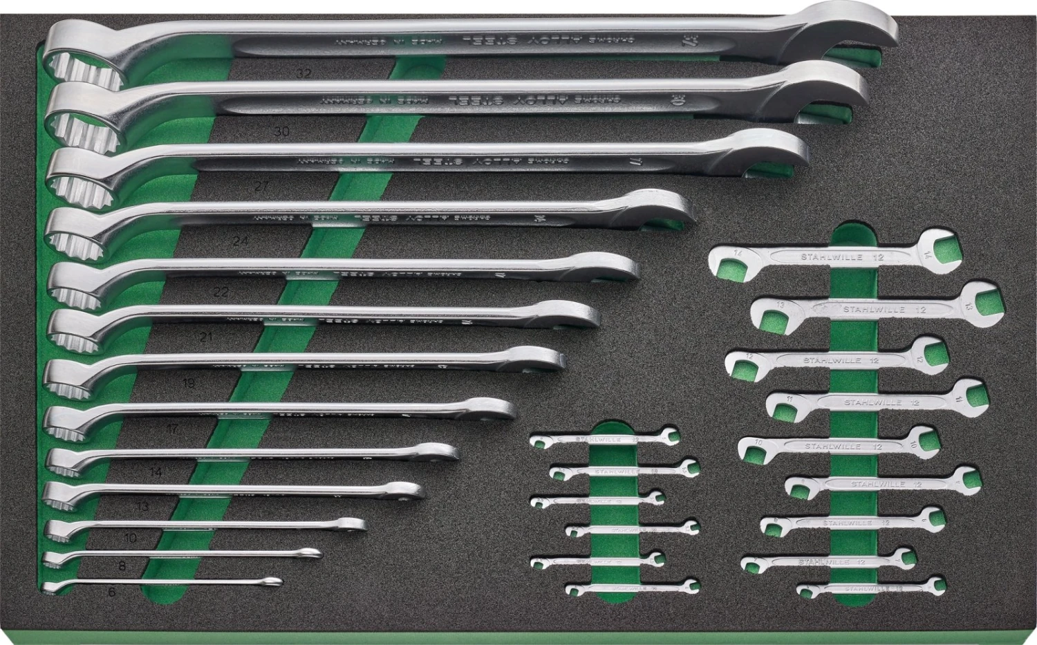 - 13 combination wrenches No. 14 : 6, 8, 10, 13, 14, 17, 19, 21, 22, 24, 27, 30, 32 mm