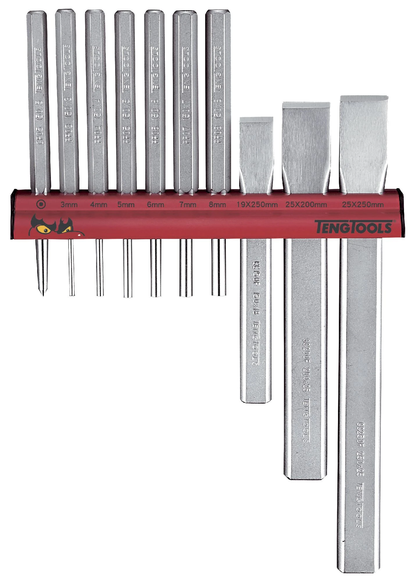 - Set includes Parallel pin punches, a centre punch and cold chisels.
