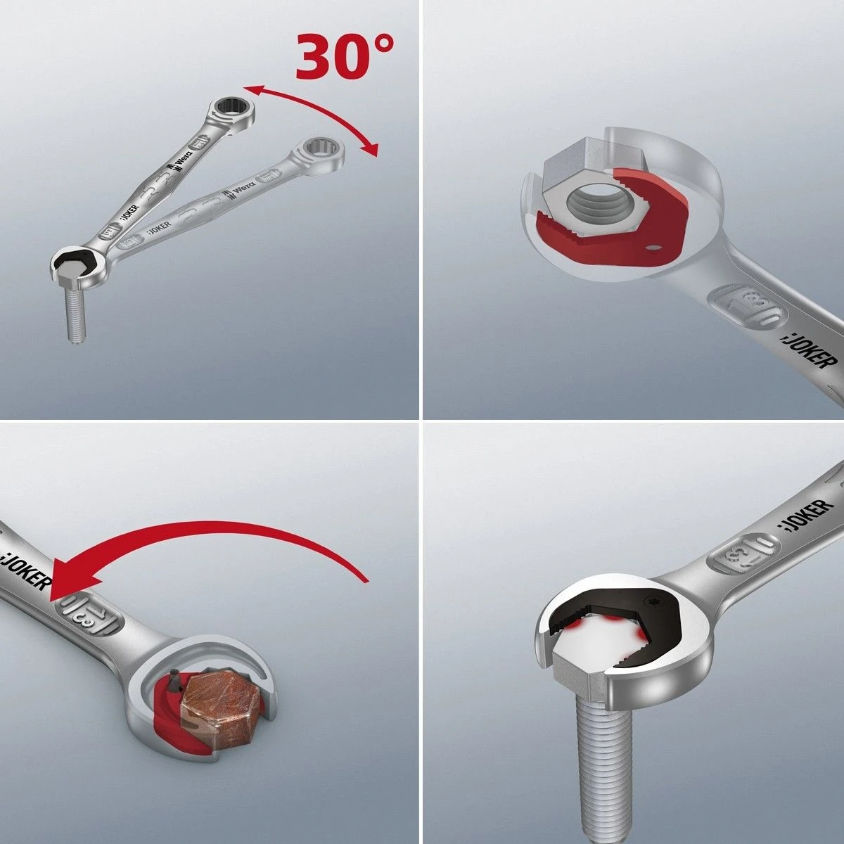 The Wera Joker is an innovative combination wrench with a unique jaw design. Its clever design means that it does everything that a conventional combination wrench does, and more. Made from durable chrome molybdenum steel and coated with corrosion resistant nickel-chrome, the Joker is a truly high quality wrench.